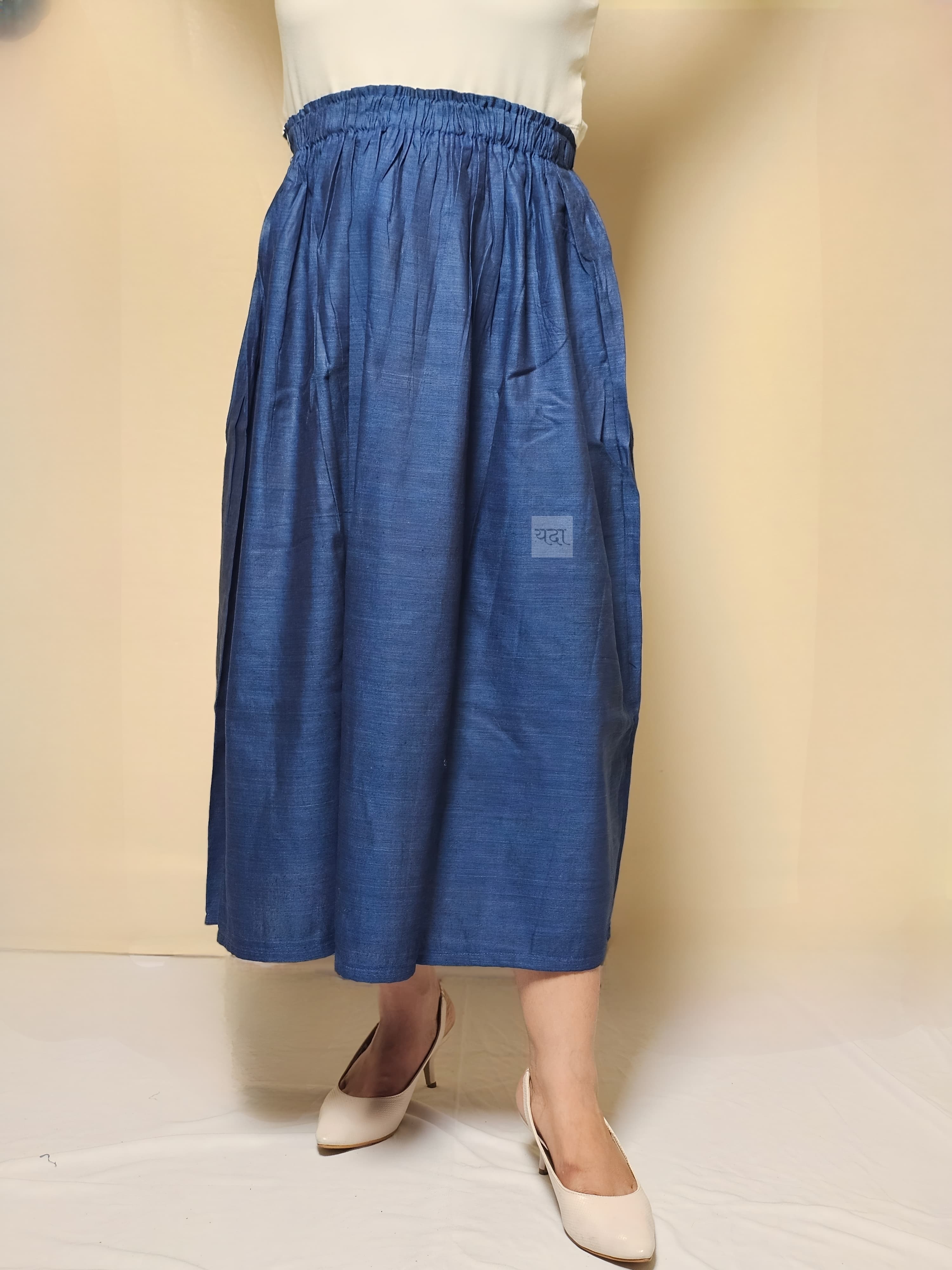 Shop our elegant blue cotton skirt, perfect for casual and formal wear. Made from breathable, high-quality cotton for all-day comfort. Available in various sizes. Order now!