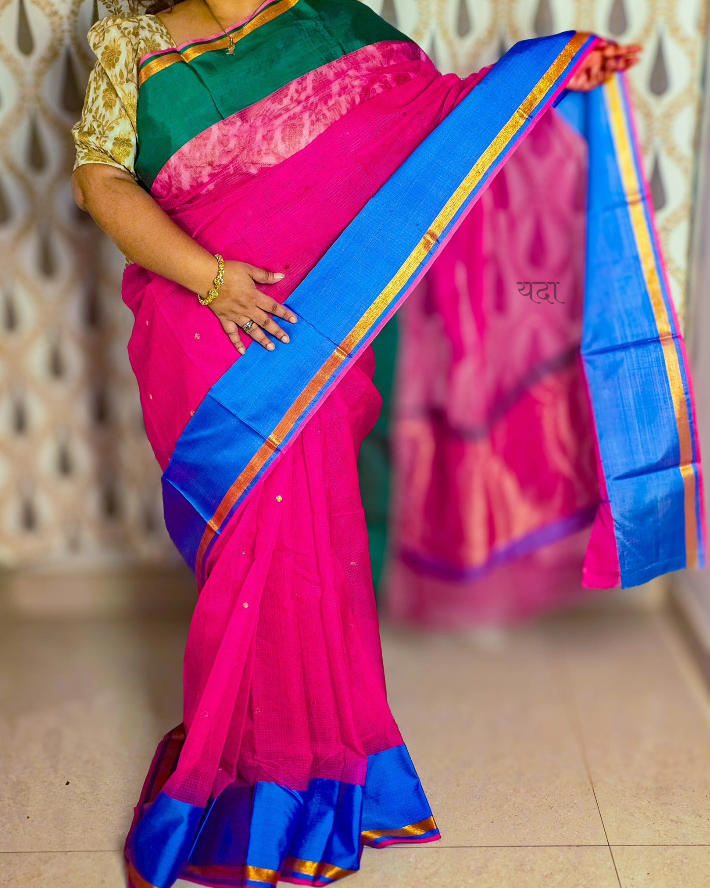 Embrace elegance with this Handwoven Pink Kota Doria Sari, crafted from the finest pure silk for a luxurious feel. Featuring intricate zari work that adds a touch of traditional charm, this sari is designed to make you stand out at any occasion. The delicate dual-tone border enhances its sophisticated appeal, making it a perfect choice for weddings, festive celebrations, or special events. The lightweight Kota doria fabric ensures comfort while maintaining a rich, opulent look. Elevate your wardrobe with this timeless, handwoven masterpiece.