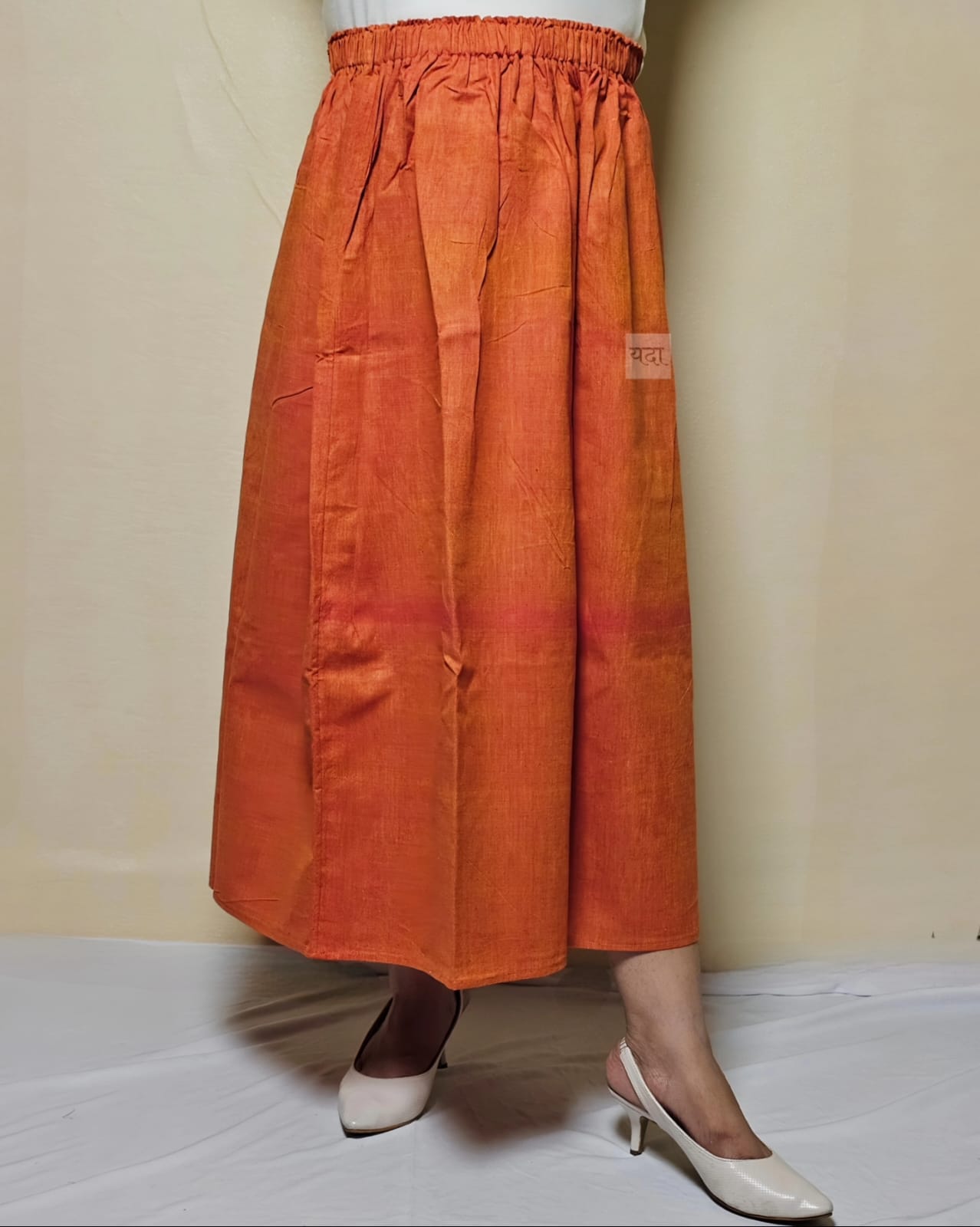 Upgrade your wardrobe with this vibrant orange cotton skirt. Made from breathable fabric, it's perfect for casual outings, office wear, or festive occasions. Shop now for comfort and style!